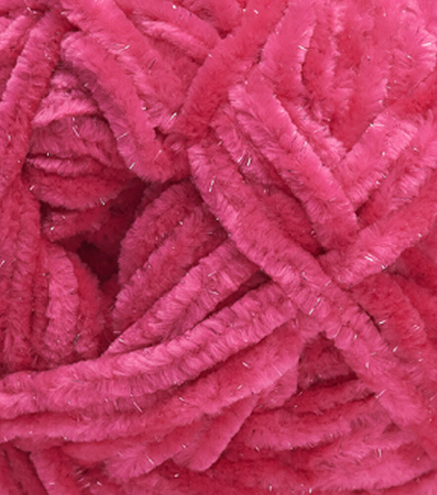 The slipper socks pictured are in the color Free Love with the Juicy Luxe Velour Sparkle Yarn.